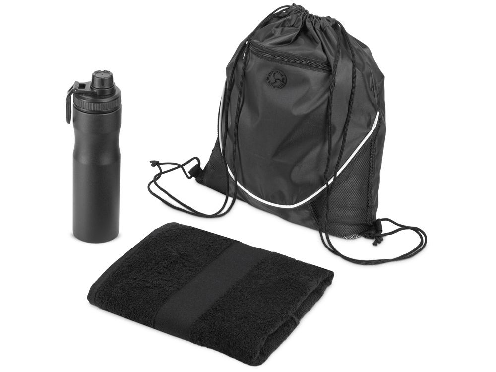 Надёжная и практичная бутылка изготовлена из пищевой стали марки SUS 304. Крышка оснащена складной ручкой, которая может быть использована для подвешивания или переноски, а также нетеряемым колпачком. Эргономичная форма позволяет бутылке удобно лежать в руке, а порошковое покрытие делает её тактильно приятной на ощупь. Вместительный рюкзак-мешок с дополнительным карманом на молнии пригодится, чтобы всегда держать под рукой всё необходимое для тренировки. Большое полотенце из 100% хлопка не вызовет аллергии и не навредит коже. • объём бутылки: 850 мл • вместительный рюкзак • практичный набор для спортивного мерча Трафаретная печать (1 цвет (цветные изделия)) на данный товар осуществляется бесплатно. Оплачивается только настройка оборудования в размере 10000 рублей на весь тираж.