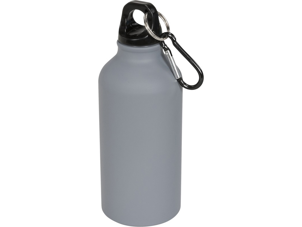 Матовая спортивная бутылка Oregon с карабином и объемом 400 мл. Бутылка с одинарными стенками со съемной крышкой. Модное матовое покрытие. Карабин не предназначен для лазанья. Объем – 400 мл. Алюминий без БФА. Трафаретная печать круговая (1 цвет (цветные изделия)) на данный товар осуществляется бесплатно. Оплачивается только настройка оборудования в размере 4500 рублей на весь тираж.