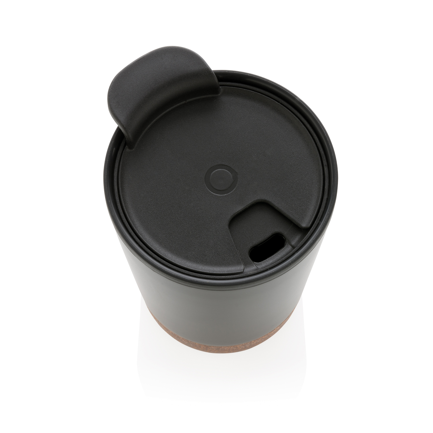 Кофейная термокружка с двойными стенками: внутри она выполнена из пластика, снаружи – с элементами пробковой отделки. Сохраняет ваши напитки теплыми до 3 часов и прохладными до 6 часов. Объем: 300 мл.