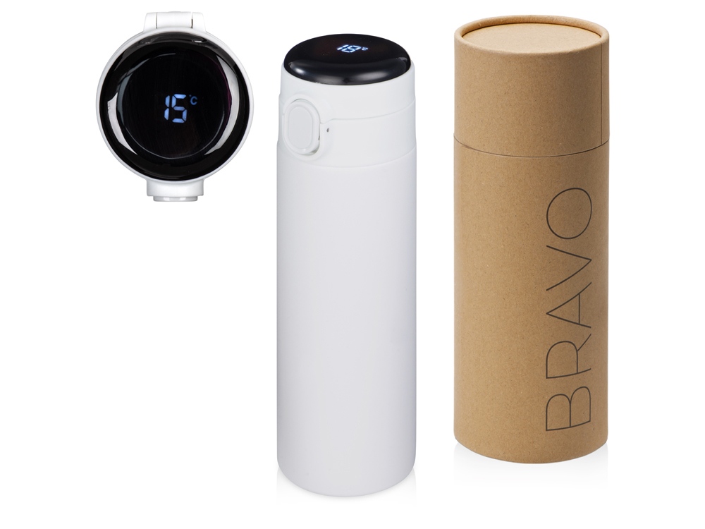 Вакуумная термокружка с медной изоляцией между стенками, которая точно не даст вам обжечься: сенсорный индикатор температуры сообщает о температуре напитка, выводя на дисплей информацию в градусах Цельсия. Что немаловажно, сенсор работает от сменной батарейки, что существенно продлит срок службы Bravo, позволяя не расставаться с полюбившейся термокружкой. Двойные стенки c дополнительным медным слоем помогают сохранять напитки горячими в течение 12 часов, что в сочетании с комфортным объемом 400 мл делает Bravo универсальным спутником на каждый день. Рельефное порошковое покрытие приятно на ощупь и позволяет термосу избегать царапин. - сенсорный индикатор температуры со сменной батарейкой - пищевая нержавеющая сталь SUS 304 - двойные стенки с вакуумной медной изоляцией - сохраняет тепло до 12 часов - универсальный объем - блокиратор от случайных нажатий Трафаретная печать круговая (1 цвет (белые изделия)) на данный товар осуществляется бесплатно. Оплачивается только настройка оборудования в размере 4500 рублей на весь тираж.