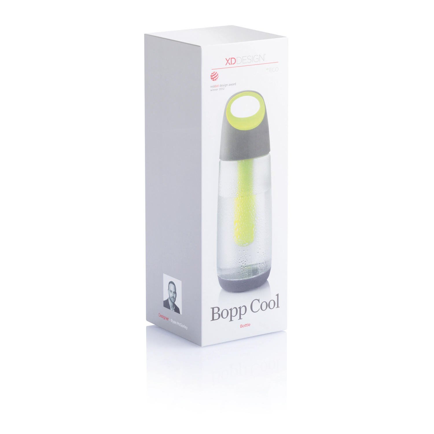 Bopp Cool – это бутылка для воды объемом 700 мл, изготовленная из экологичных материалов Tritan™, которые не содержат бисфенол А, более прочны и не сохраняют запахов. Бутылка имеет встроенную капсулу для льда, благодаря которой вы сможете охладить напиток изнутри, не разбавляя его льдом. Зарегистрированный дизайн®.