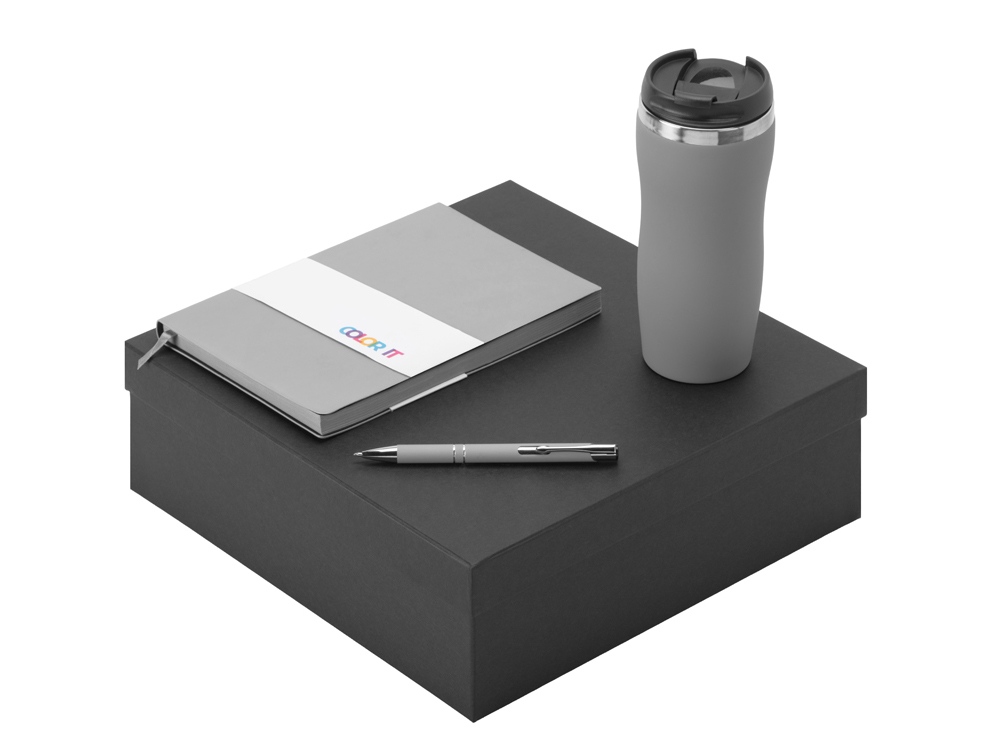 Color It — линейка, в которую входят хиты мерча в десяти самых популярных цветах. Еще никогда собрать сет под свой брендбук не было так просто. Широкая цветовая палитра серии позволяет создать идеальный набор в едином оттенке Pantone. Все товары имеют тактильно приятное покрытие софт-тач. Сет поставляется в коробке: мы продумали все, включая подарочную упаковку, за вас — осталось нанести лого! Термокружка оснащена плотно завинчивающейся крышкой, которая исключает проливание содержимого. Откидной клапан позволяет пить, не снимая крышку. Сохранение температуры осуществляется благодаря вакуумной изоляции и двойным стенкам. Бизнес-блокнот в гибкой обложке имеет ляссе в тон обложки и среза. Бумажный блок разлинован в линейку и выполнен из бумаги, полученной из древесины из специальных восполняемых лесных ресурсов, имеет сертификат FSC. Шариковая ручка имеет сменный стержень, поэтому такой мерч прослужит дольше обычной одноразовой ручки, долго напоминая о вас клиентам. - софт-тач покрытие на всех предметах набора; - объём термокружки: 350 мл; - блокнот А5 128 листов; - ручка с необычным слайдером; - подарочная упаковка из картона, оклеенного дизайнерской бумагой уже включена в набор. Трафаретная печать (1 цвет (цветные изделия)) на данный товар осуществляется бесплатно. Оплачивается только настройка оборудования в размере 10000 рублей на весь тираж.