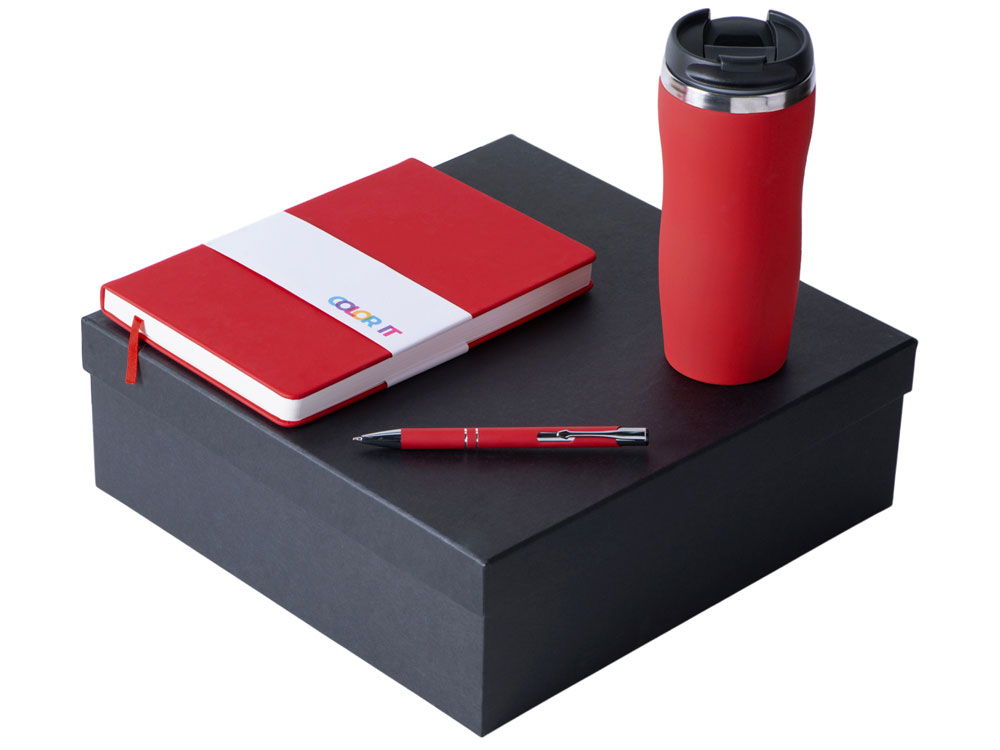 Color It — линейка, в которую входят хиты мерча в десяти самых популярных цветах. Еще никогда собрать сет под свой брендбук не было так просто. Широкая цветовая палитра серии позволяет создать идеальный набор в едином оттенке Pantone. Все товары имеют тактильно приятное покрытие софт-тач. Сет поставляется в коробке: мы продумали все, включая подарочную упаковку, за вас — осталось нанести лого! Термокружка оснащена плотно завинчивающейся крышкой, которая исключает проливание содержимого. Откидной клапан позволяет пить, не снимая крышку. Сохранение температуры осуществляется благодаря вакуумной изоляции и двойным стенкам. Бизнес-блокнот в твёрдой обложке с магнитным держателем для ручки имеет ляссе в тон обложки. Бумажный блок разлинован в линейку и выполнен из бумаги, полученной из древесины из специальных восполняемых лесных ресурсов, имеет сертификат FSC. Шариковая ручка имеет сменный стержень, поэтому такой мерч прослужит дольше обычной одноразовой ручки, долго напоминая о вас клиентам. - софт-тач покрытие на всех предметах набора; - объём термокружки: 350 мл; - блокнот А5 128 листов; - ручка с необычным слайдером; - подарочная упаковка из картона, оклеенного дизайнерской бумагой уже включена в набор. Трафаретная печать (1 цвет (цветные изделия)) на данный товар осуществляется бесплатно. Оплачивается только настройка оборудования в размере 10000 рублей на весь тираж.