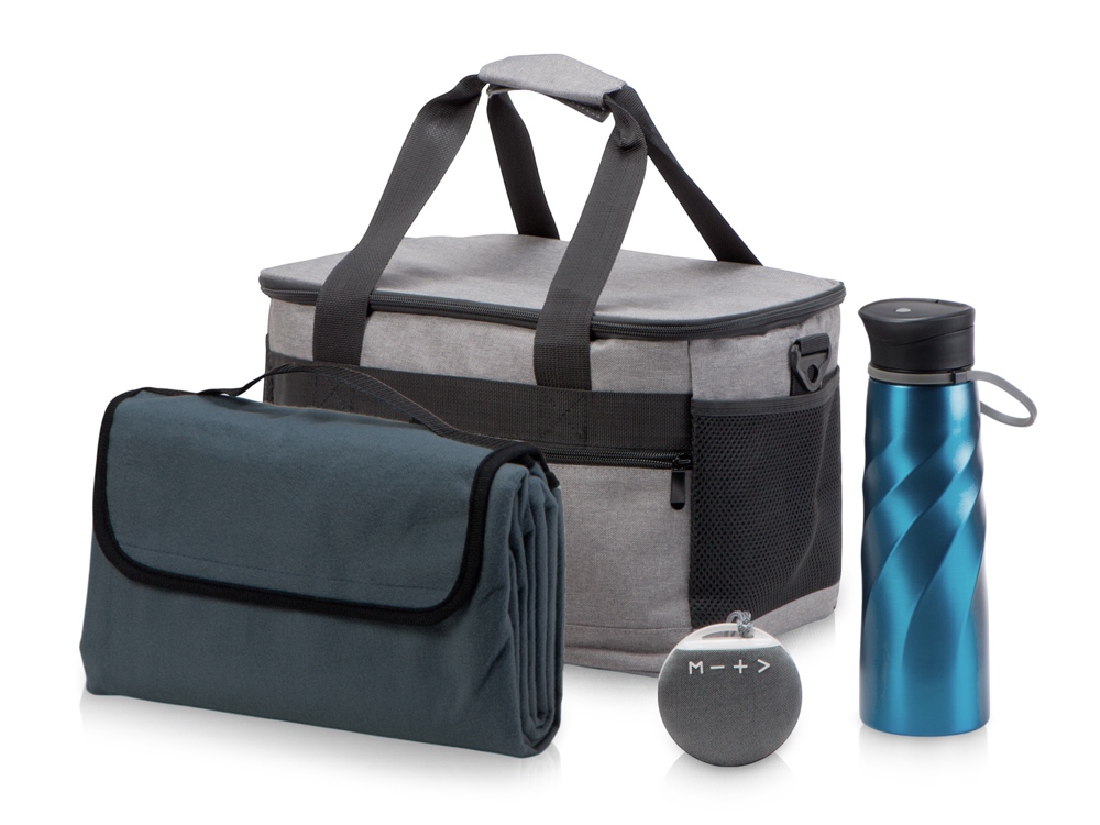 Всё, что нужно для пикника! Надежная и стильная портативная колонка имеет стильный дизайн, контрастный цвет кнопок и задней крышки, а также удобное крепление для переноски. Колонка обтянута акустической тканью для лучшего звучания, и проигрывает музыку со стандартной USB флешки или micro SD карты. Верхняя часть пледа изготовлена из мягкого и практичного флиса, подкладка из непромокаемого материала обеспечивает дополнительный комфорт. Удобная ручка и крепление на липучке помогает комфортно переносить плед в сложенном виде. Вместительная сумка-холодильник имеет основное отделение и карман спереди на молнии. Специальная конструкция дна предотвращает протекание жидкости от размораживания. Съемный плечевой ремень регулируется по длине. В комплекте открывалка для бутылок. Бутылка для воды сочетает в себе превосходную функциональность и внешний вид. Высококачественная сталь 18/8 и одностенная конструкция делает бутылку не только прочной, но и лёгкой. Крышка сконструирована таким образом, чтобы ее можно полностью разобрать для удобной чистки. - колонка позволяет принимать звонки и имеет режим радио; - сумка с 2 дополнительными сетчатыми карманами; - объем бутылки 1000 мл. Термотрансфер (1 цвет (цветные изделия)) на данный товар осуществляется бесплатно. Оплачивается только настройка оборудования в размере 10000 рублей на весь тираж.