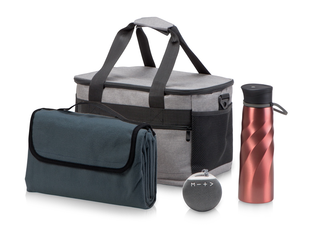 Всё, что нужно для пикника! Надежная и стильная портативная колонка имеет стильный дизайн, контрастный цвет кнопок и задней крышки, а также удобное крепление для переноски. Колонка обтянута акустической тканью для лучшего звучания, и проигрывает музыку со стандартной USB флешки или micro SD карты. Верхняя часть пледа изготовлена из мягкого и практичного флиса, подкладка из непромокаемого материала обеспечивает дополнительный комфорт. Удобная ручка и крепление на липучке помогает комфортно переносить плед в сложенном виде. Вместительная сумка-холодильник имеет основное отделение и карман спереди на молнии. Специальная конструкция дна предотвращает протекание жидкости от размораживания. Съемный плечевой ремень регулируется по длине. В комплекте открывалка для бутылок. Бутылка для воды сочетает в себе превосходную функциональность и внешний вид. Высококачественная сталь 18/8 и одностенная конструкция делает бутылку не только прочной, но и лёгкой. Крышка сконструирована таким образом, чтобы ее можно полностью разобрать для удобной чистки. - колонка позволяет принимать звонки и имеет режим радио; - сумка с 2 дополнительными сетчатыми карманами; - объем бутылки 1000 мл. Термотрансфер (1 цвет (цветные изделия)) на данный товар осуществляется бесплатно. Оплачивается только настройка оборудования в размере 10000 рублей на весь тираж.