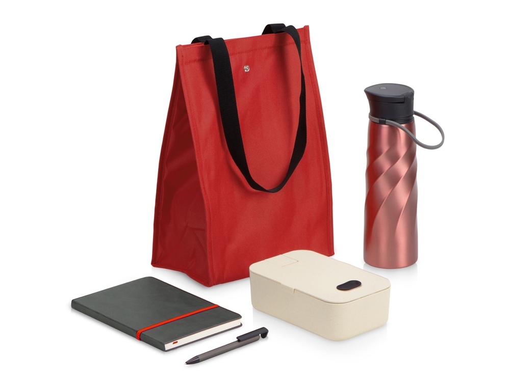 Трендовый практичный набор современного городского жителя. Блокнот в универсальном формате А5 будет полезен как работы в офисе, так и на встрече с клиентом. Твердая обложка из искусственной кожи имеет зернистую структуру и скругленные углы, делая его комфортным в использовании. Внутри 160 линованных страниц кремового цвета высокой плотности 80 г/м2. Ручкой-подставкой можно не только делать записи, но также использовать как компактную подставку для смартфона. Металлический корпус шариковой ручки подходит для нанесения гравировки. Ланч-бокс можно брать с собой на работу и в командировки. Крышка с клапаном надежно и герметично закрывает бокс. Чтобы облегчить открытие контейнера, сначала выпустите воздух из него, потянув за силиконовый клапан на крышке. Деталь для фиксации крышки контейнера выполняет дополнительную функцию подставки для телефона. Бутылка для воды сочетает в себе превосходную функциональность и внешний вид. Высококачественная сталь 18/8 и одностенная конструкция делает бутылку не только прочной, но и лёгкой. Крышка сконструирована таким образом, чтобы ее можно полностью разобрать для удобной чистки. Вместительная сумка-холодильник, которая подходит для винных бутылок. Внутренняя подкладка из пены толщиной 2 мм обеспечивает сохранность температуры внутри сумки. Сумка складывается и застегивается на кнопку. Наклейки формата А5 подойдут для создания уникального стикерпака по вашему дизайну. - яркие акцентные ляссе и резинка блокнота; - объем ланчбокса 1 л; - сумка-холодильник закрывается на липучку. Не рекомендуется использование ланчбокса в посудомоечной машине и микроволновой печи. Термотрансфер (1 цвет (цветные изделия)) на данный товар осуществляется бесплатно. Оплачивается только настройка оборудования в размере 10000 рублей на весь тираж.