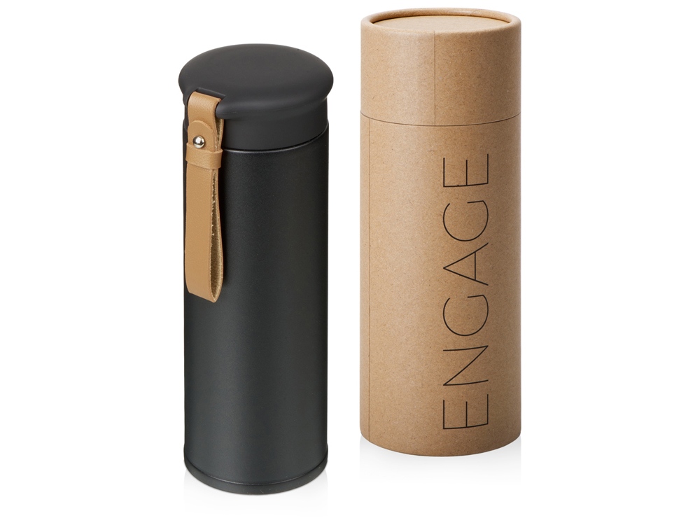 Engage — термос из долговечной нержавеющей стали с двойными стенками, вакуумная изоляция между которыми помогает сохранять температуру напитков в течение долгого времени. Термос идеально подходит для заваривания чая: специально для этого в комплекте идет металлическое ситечко с ручкой, которое не пропустит ни одной чаинки. Термос герметично завинчивается на крышку, оснащенную съемным ремешком из качественной ПУ кожи. Крышка имеет прорезиненное покрытие, что создает интересное сочетание текстур в рамках одной модели. Корпус имеет элегантную рельефную поверхность с антискользящим эффектом. - Удобный ремешок - Герметичная крышка soft-touch - Сохраняет тепло и холод до 18 часов - Пищевая долговечная сталь 304 марки - Оптимальный объем Трафаретная печать круговая (1 цвет (цветные изделия)) на данный товар осуществляется бесплатно. Оплачивается только настройка оборудования в размере 4500 рублей на весь тираж.