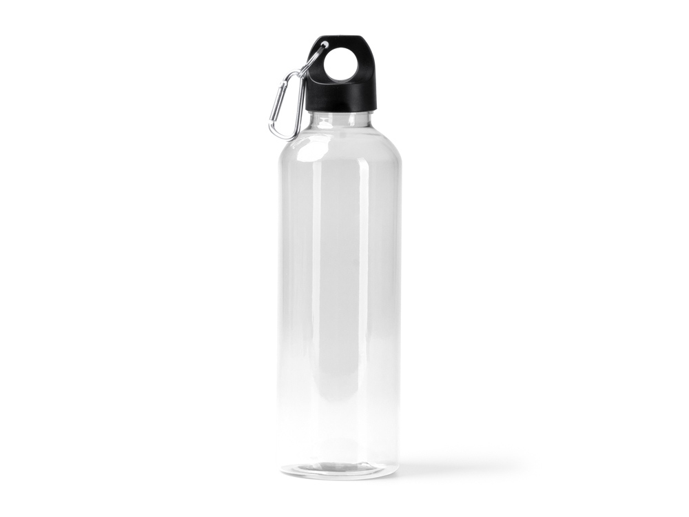 Бутылка с корпусом из RPET. Крышка с карабином. Объём: 800 мл. Трафаретная печать круговая (1 цвет (цветные изделия)) на данный товар осуществляется бесплатно. Оплачивается только настройка оборудования в размере 6400 рублей на весь тираж.