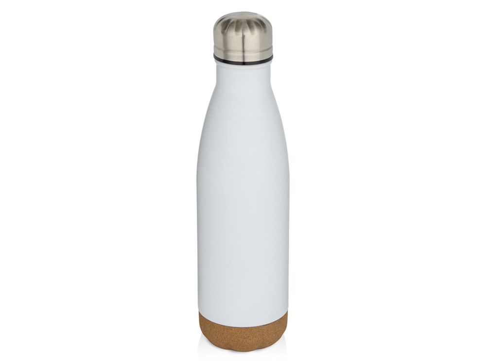 Бутылка для воды из нержавеющей стали с вакуумной изоляцией и пробковыми деталями в нижней части. Двойная изоляция стенок сохраняет напитки горячими или холодными в течение нескольких часов. Поставляется в подарочной коробке из переработанного картона. Объем: 500 мл. 90% нержавеющая сталь, 10% Пробка. упаковка FSC Mix Credit P5.1 CU-COC-877277.