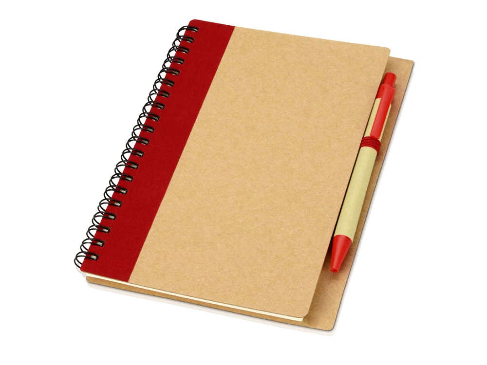 Блокнот с 60 листами переработанной бумаги 70 г/м2 и картонной ручкой в цвет блокнота. Трафаретная печать по твердым материалам (1 цвет (цветные изделия)) на данный товар осуществляется бесплатно. Оплачивается только настройка оборудования в размере 4500 рублей на весь тираж.