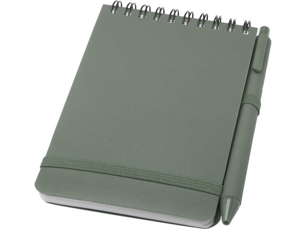 Блокнот Thalaasa формата А6 в твердой обложке изготовлен из переработанного океанического пластика и содержит 80 линованных листов кремовой бумаги плотностью 70 г/м². Блокнот имеет закругленные углы, эластичную застежку и петлю для ручки. Шариковая ручка с черными чернилами также изготовлена из переработанного океанического пластика. Длина непрерывной линии: 1000 метров. Размер пера: 1,0 мм.