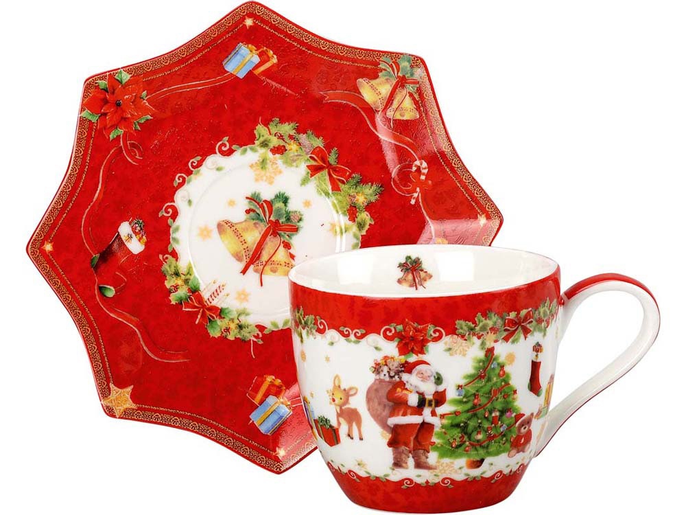 Чайная пара Санта Клаус (красный, разноцветный) оптом по цене 1 799 руб. Печать логотипа