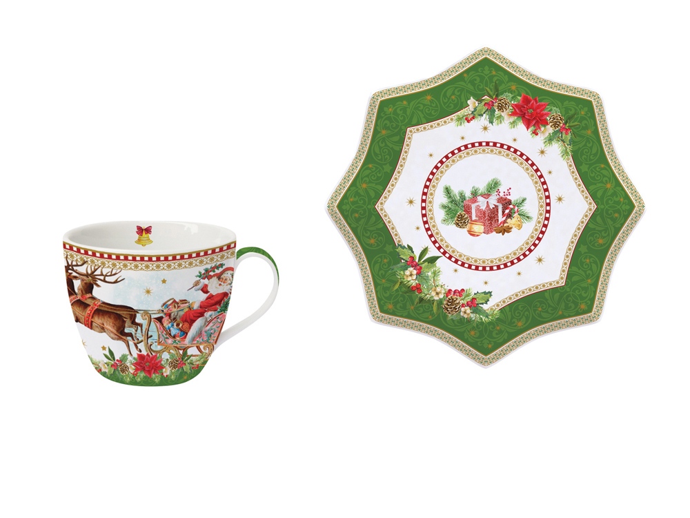 Стильная чайная пара с новогодним рисунком - отличное дополнение сладкого подарка. Набор Новогоднее настроение приковывает внимание с первого взгляда. Изящный орнамент блюдца, традиционная рождественская цветовая гамма и новогодний рисунок на чашке – этот набор отличный новогодний подарок для ценителя утонченного стиля и качественных вещей. Набор упакован в подарочную коробку. Хотите сделать стильный новогодний подарок? Выбирайте набор Новогоднее настроение.