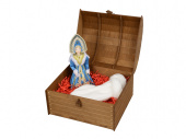 Подарочный набор для тех, кто ценит волшебную атмосферу русских народных сказок. Интерьерная кукла Снегурочка украсит любую домашнюю или офисную праздничную инсталляцию, а белоснежные флисовые варежки с отделкой из искусственного меха могут дополнить любой образ Снегурочки или просто согреть в ненастную погоду. Волшебному подарку — соответствующая упаковка, а именно, деревянный сундучок, продолжающий тему рождественских чудес.