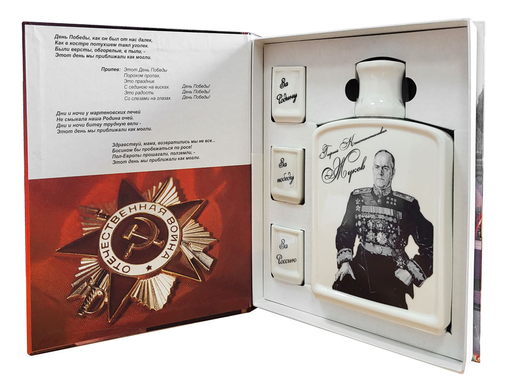 День Победы - один из самых важных и памятных государственных праздников в нашей стране. В этот знаковый для России день принято дарить памятные сувениры. Подарочный набор День Победы - это великолепный подарок, который запомнится надолго. Сувениры изготовлены из высококачественной керамики и упакованы в подарочную коробку с изображением главных символов праздника. В комплекте идет штоф и три стопки с патриотическими тостами За Россию, За Родину, За победу. Этот подарочный набор станет прекрасным дополнением к праздничному столу. Внимание! Данное изделие относится к категории повышенной хрупкости. Для обеспечения его целостности и безопасной транспортировки настоятельно рекомендуется использование обрешетки. Обрешеточная упаковка является обязательной при доставке, и компания Oasis не несёт ответственности за повреждения, возникшие в результате ненадлежащей упаковки или транспортировки без обрешетки.