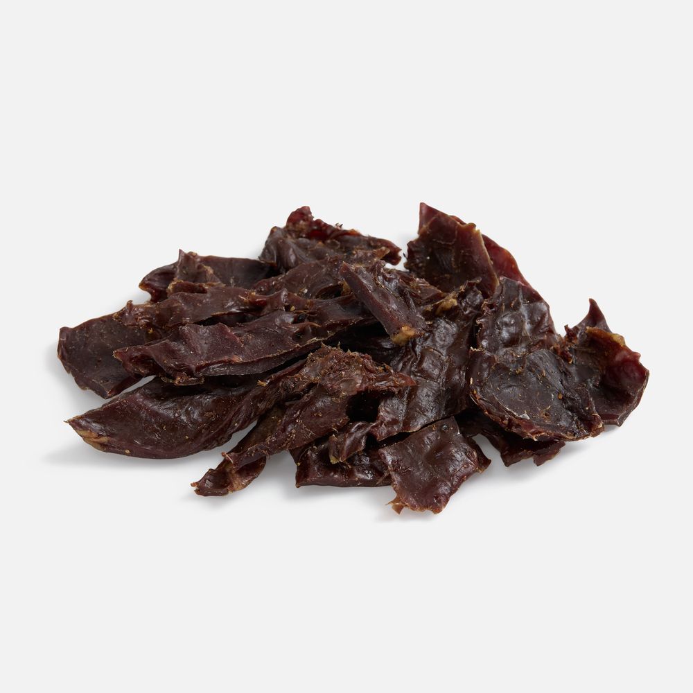 Состав: оленина, соль пищевая, перец черный, аджика, соевый соус. -