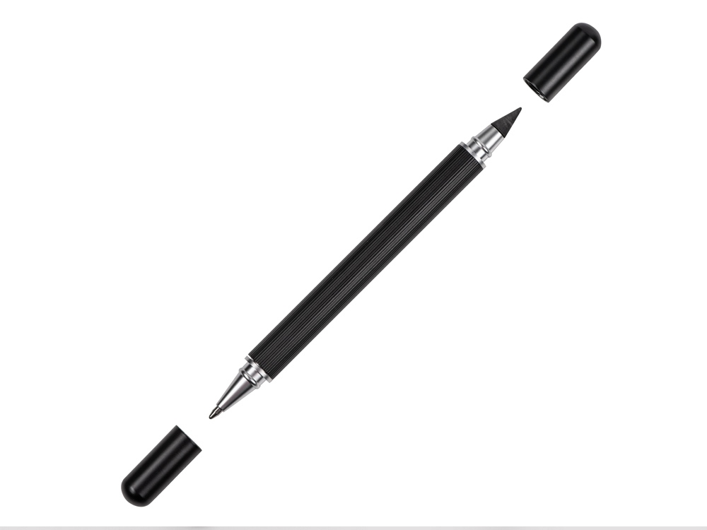 Стильный аксессуар 2в1: с одной стороны - ручка, с другой - вечный карандаш, который практически невозможно исписать! Гравировка (оптоволоконный лазер) (Без чернения) на данный товар осуществляется бесплатно. Оплачивается только настройка оборудования в размере 2700 рублей на весь тираж.