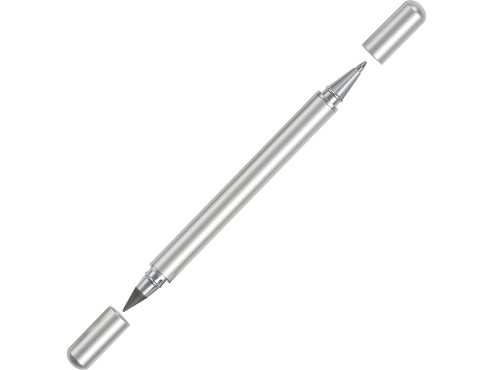 Стильный аксессуар 2в1: с одной стороны - ручка, с другой - вечный карандаш, который практически невозможно исписать! Гравировка (оптоволоконный лазер) (Без чернения) на данный товар осуществляется бесплатно. Оплачивается только настройка оборудования в размере 2700 рублей на весь тираж.