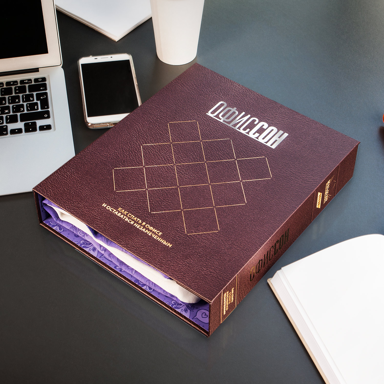 Набор для людей, знакомых с офисной жизнью и обладающих хорошим чувством юмора. Уникальный подарок, который поможет незаметно вздремнуть посреди рабочего дня. Просто откройте этот набор, маскирующийся под огромный фолиант, и вы найдёте всё необходимое, чтобы устроить на рабочем месте незаметное «сонное царство». Необычная концепция, качественный дизайн, лёгкая креативная подача набора, а также множество шуток заряжают позитивом и позволяют немного отвлечься от офисной рутины. Состав набора*: • Надувная подушка с оригинальным чехлом • Предупреждающие таблички • Настольный сонник офисного работника • Маска для сна со сменными «глазами» *Предметы, входящие в состав набора, могут отличаться по цвету и форме, но при этом сохранять базовые параметры и выполняемые ими функции.