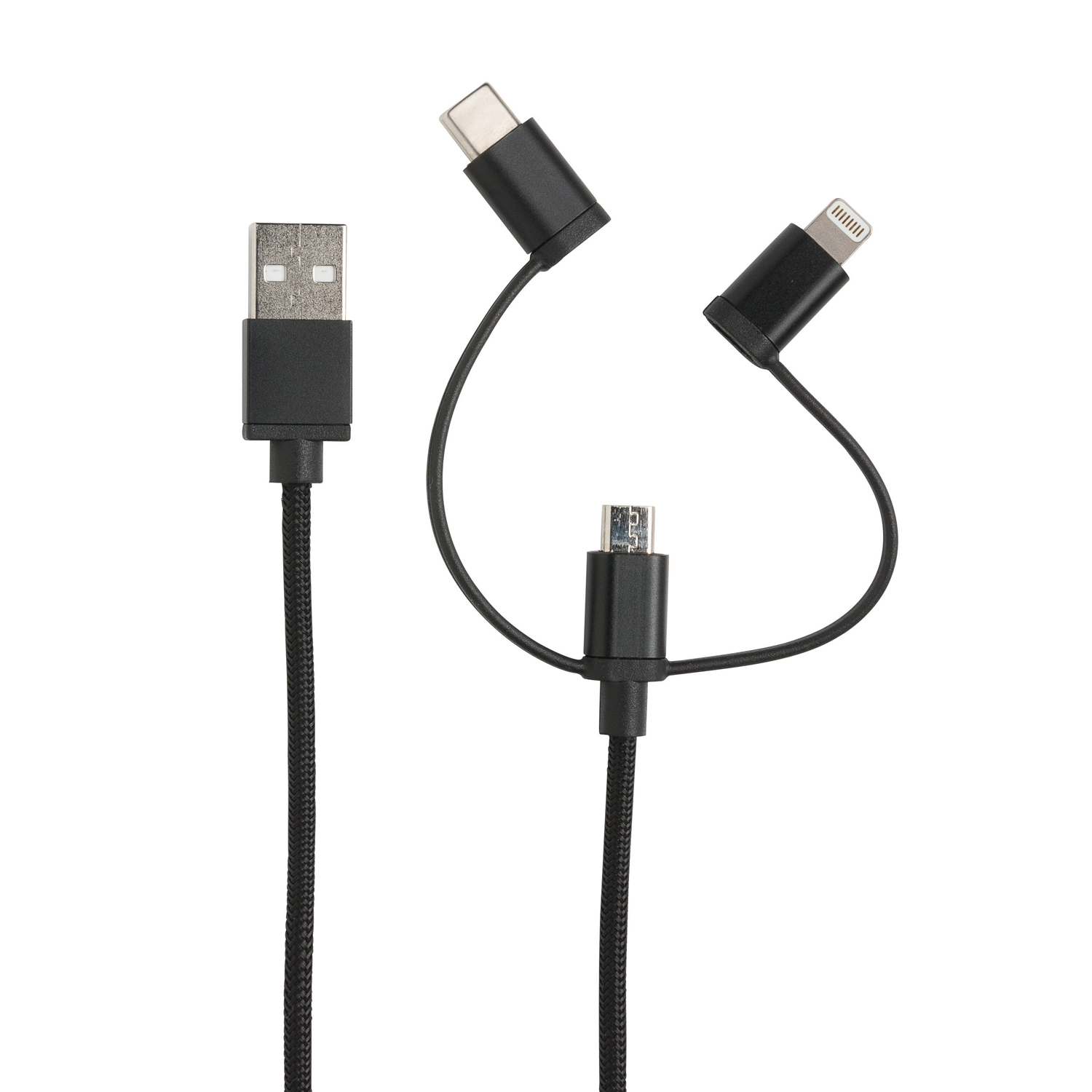 Универсальный кабель с тремя выходами: micro-USB, Type-C и лицензированным MFi lightning подходит не только для зарядки мобильных устройств, но и для передачи данных. Длина кабеля составляет 1м. Идет в комплекте с удобным нейлоновым мешочком для хранения кабеля.