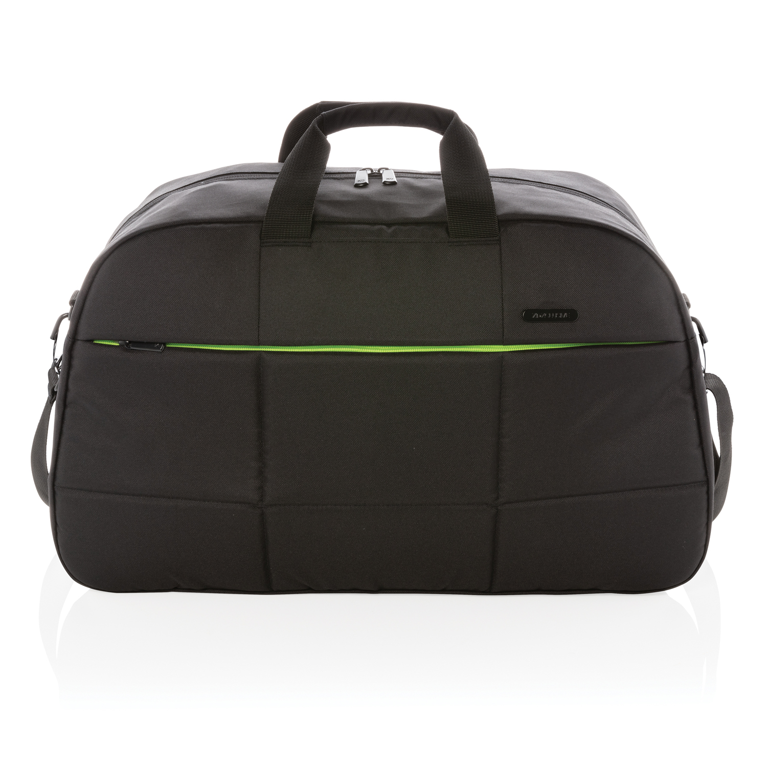 Эта сумка идеально подойдет для короткой поездки или перелета, незаменимый помощник современного путешественника. Сумка выполнена из материала RPET, среднего размера, есть отделение для ноутбука с диагональю до 15.6 дюймов с мягкой подкладкой. Съемный ремень позволяет носить сумку через плечо. Не содержит ПВХ. Зарегистрированный дизайн®