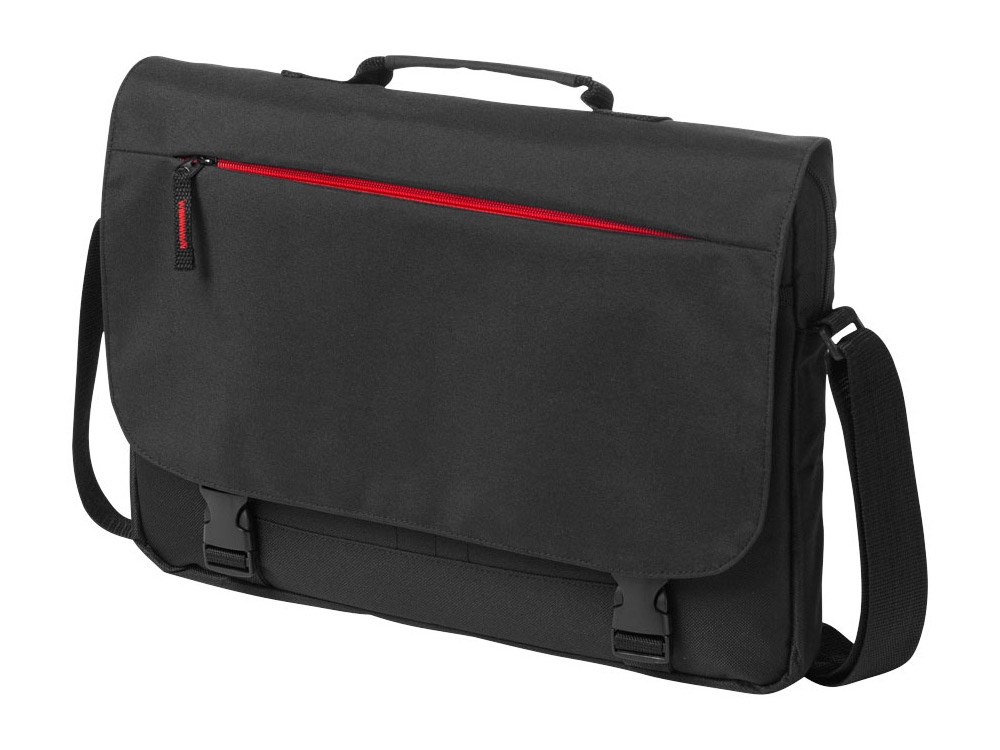 Черная сумка для ноутбука с контрастной красной вставкой 15,6. Уплотненное основное отделение для защиты ноутбука от механических повреждений. Отделение для планшета. Панель органайзер. Возможно нанесение на сумку оригинального изображения. Термотрансфер (1 цвет (цветные изделия)) на данный товар осуществляется бесплатно. Оплачивается только настройка оборудования в размере 7384.62 рублей на весь тираж.