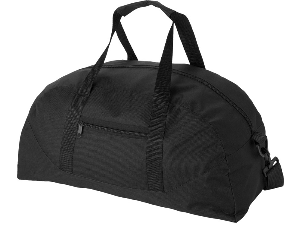 Спортивная сумка Stadium. Основное и переднее отделение на молнии. Две усиленные ручки. Регулируемый плечевой ремень, максимальная длина 110 см. Полиэстер 600D. Термотрансфер (1 цвет (цветные изделия)) на данный товар осуществляется бесплатно. Оплачивается только настройка оборудования в размере 7384.62 рублей на весь тираж.
