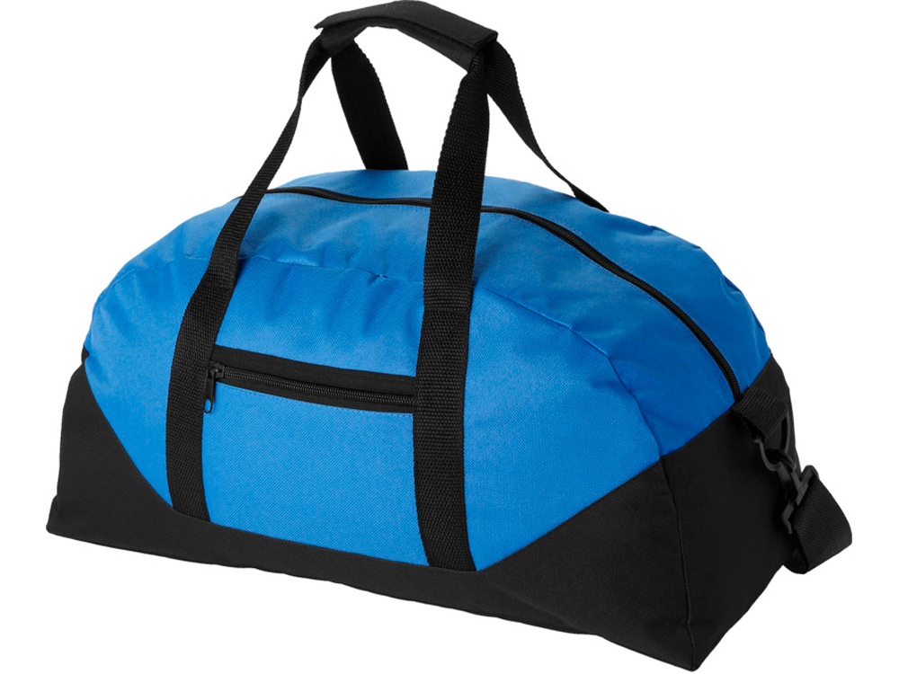 Спортивная сумка Stadium. Основное и переднее отделение на молнии. Две усиленные ручки. Регулируемый плечевой ремень, максимальная длина 110 см. Полиэстер 600D. Термотрансфер (1 цвет (цветные изделия)) на данный товар осуществляется бесплатно. Оплачивается только настройка оборудования в размере 7384.62 рублей на весь тираж.