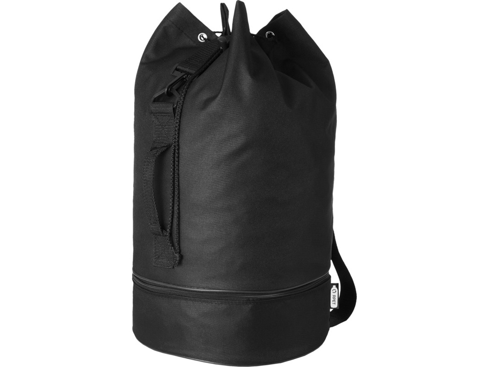 Водонепроницаемый спортивный вещмешок из переработанного РЕТ-пластика с вместительным 20 основным отделением объемом 20 литров, застежкой на шнурке, боковой ручкой и регулируемым плечевым ремнем. Также имеет отдельное нижнее отделение на молнии для небольших предметов.