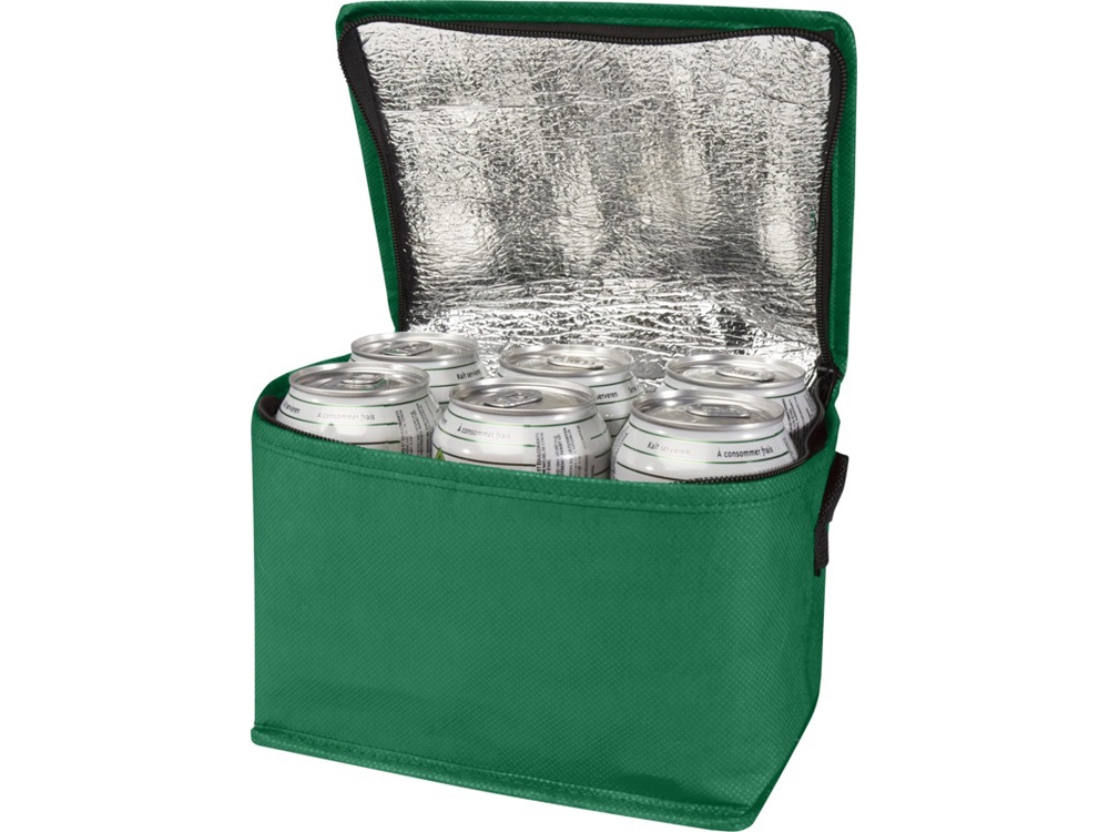 Сделанная из прочного и стойкого к разрывам нетканого RPET, сумка-холодильник Spectrum на 6 банок, изготовленная из переработанных материалов, подходит для хранения до 6 банок и оснащена удобной для переноски ручкой из тесьмы. Объем: 4 литр. GRS certified recycled polyester.