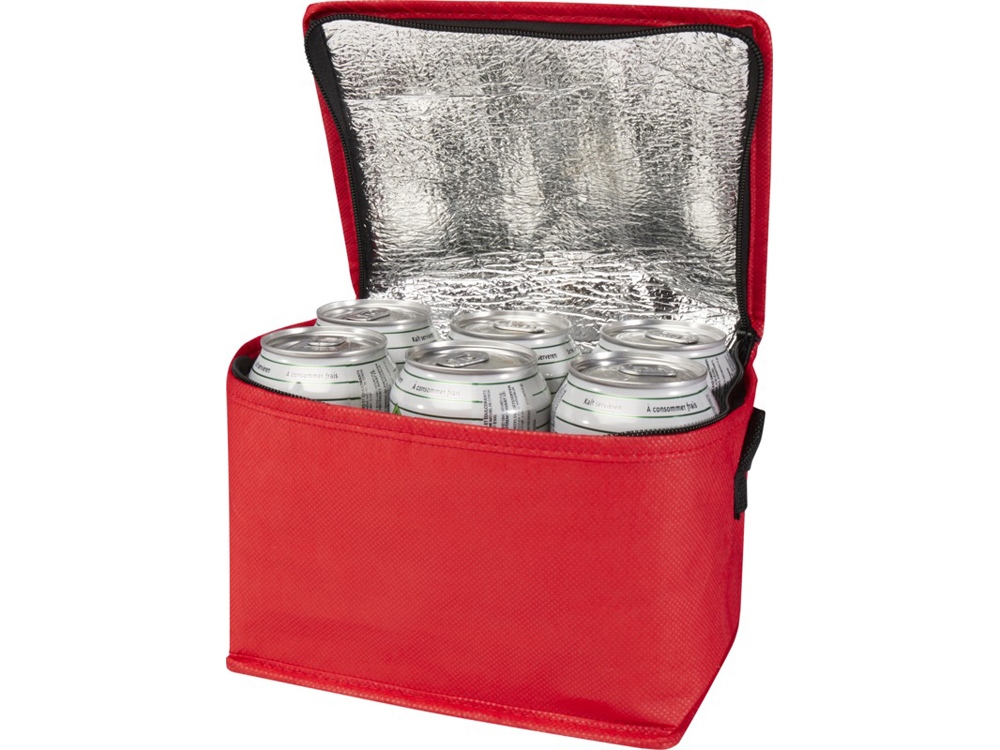 Сделанная из прочного и стойкого к разрывам нетканого RPET, сумка-холодильник Spectrum на 6 банок, изготовленная из переработанных материалов, подходит для хранения до 6 банок и оснащена удобной для переноски ручкой из тесьмы. Объем: 4 литр. GRS certified recycled polyester.