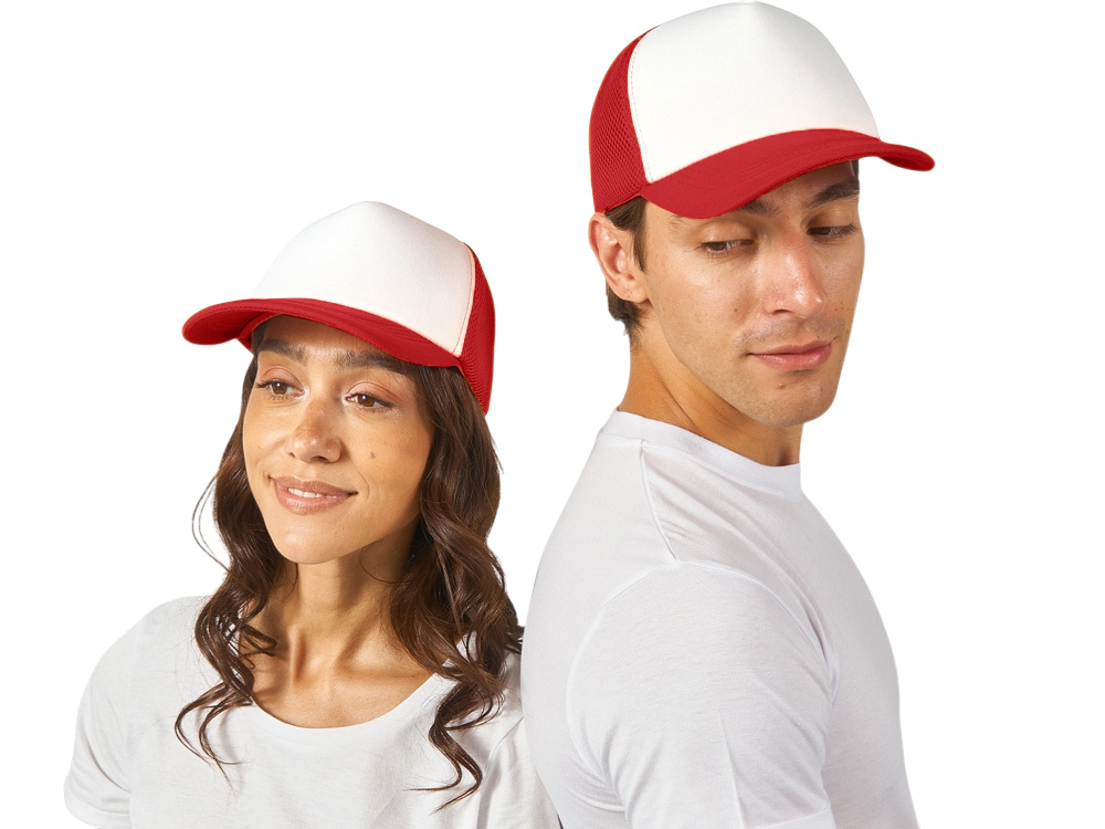 Бейсболка из 5 клиньев с мягкой сеткой. Регулируемая пластиковая застежка сзади. Передняя панель продублирована тонким поролоном.