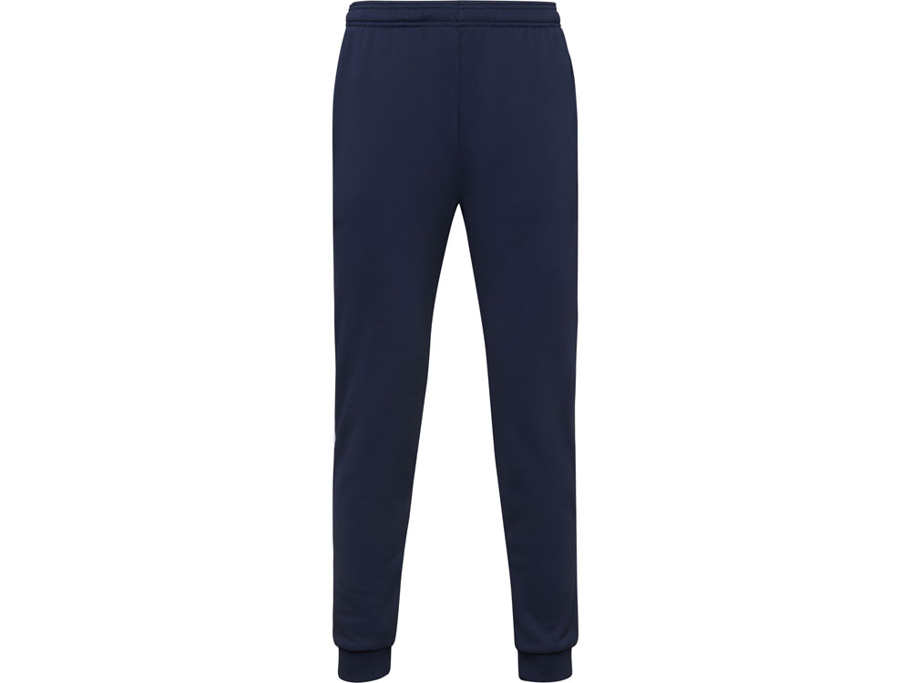 Спортивные брюки с эластичным поясом и шнурком. Боковые карманы закрываются на молнию. Контрастные лампасы белого цвета. Низ с манжетами из риба 1х1. Может быть с комбинирован с курткой Leros.