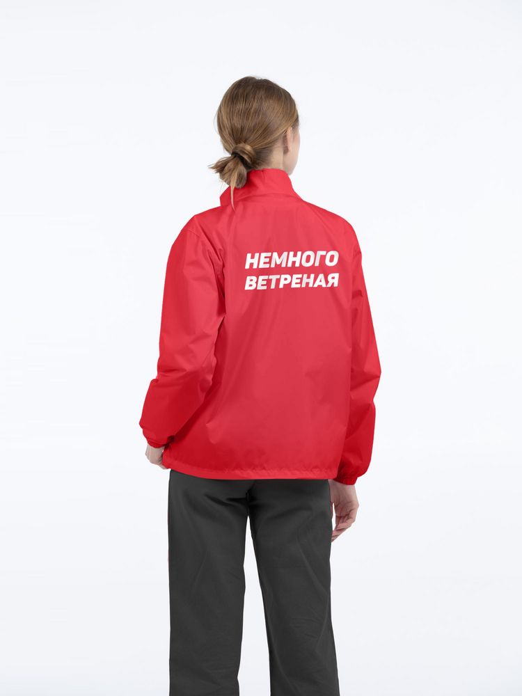 Ветреная погода — не повод сидеть дома и унывать! Тем более, если она не намного более ветреная, чем обладательница этой необычной ветровки.Ветровка на молнии с капюшоном и одним карманом с правой стороны.