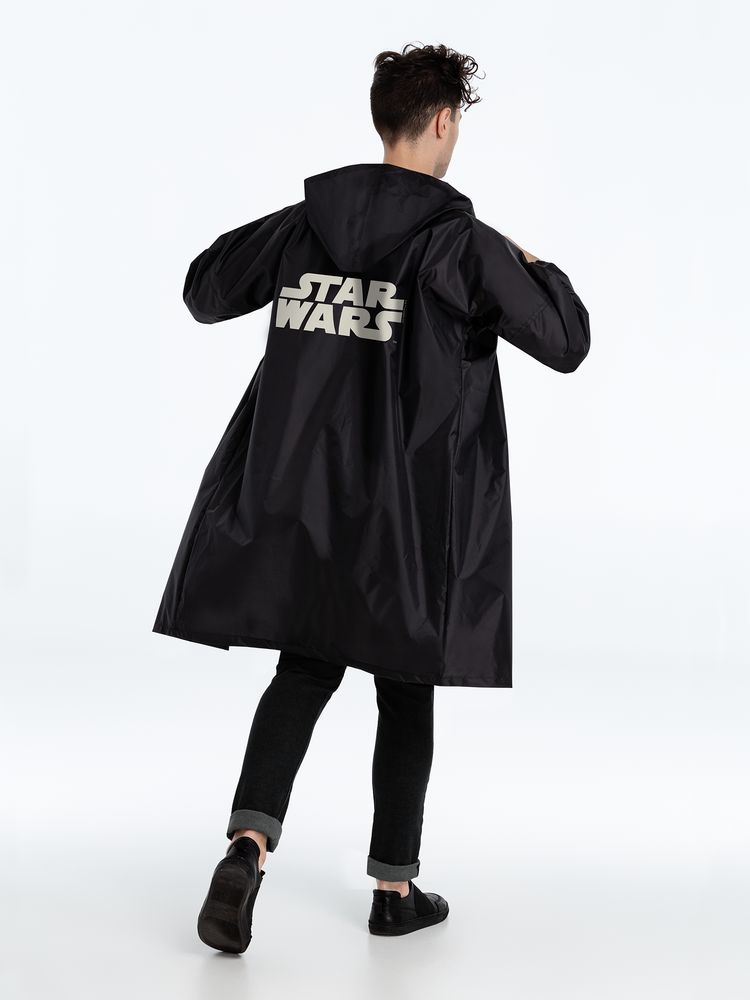 Плащ-дождевик на молнии с капюшоном. Складывается в мешочек — удобно брать с собой.