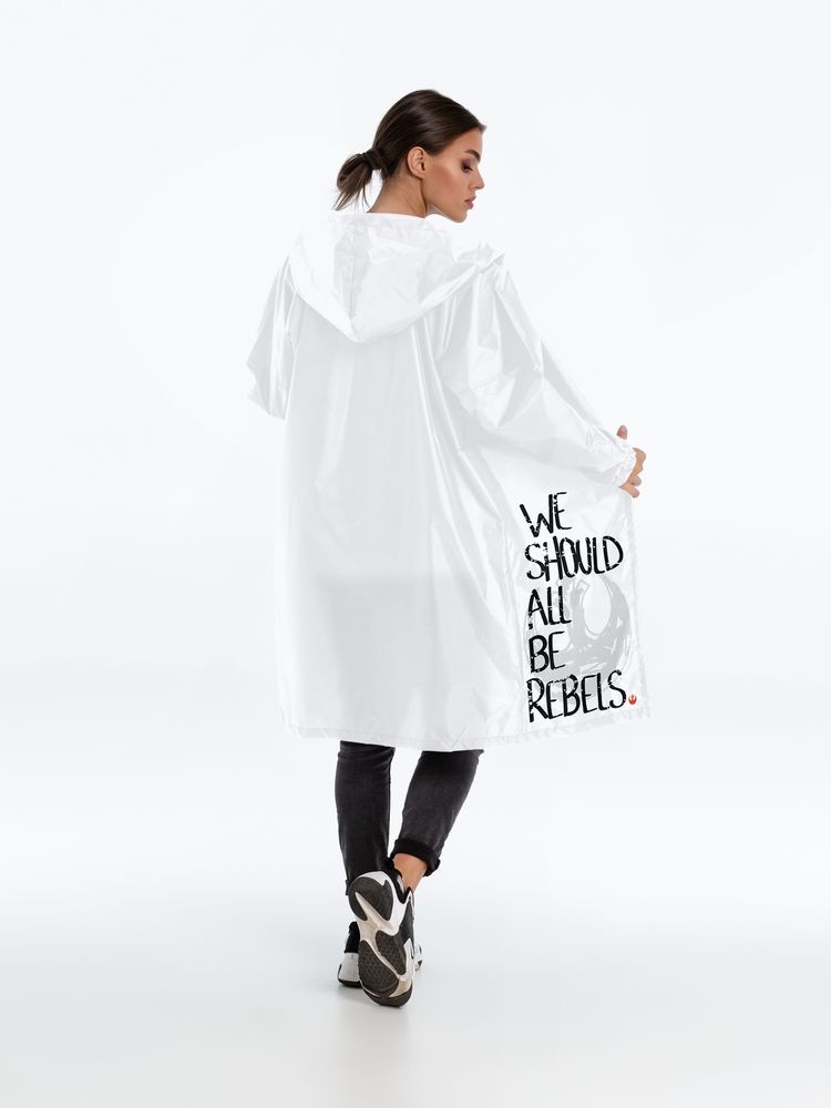 «Мы все должны быть повстанцами», — гласит надпись на дождевике с символом знаменитого ордена. Искра мятежа должна быть в каждом, кто хочет определить будущее Галактики и свергнуть зловещую Империю. Кто, если не смелые и отважные бунтари, спасет мир от сил Тьмы? Да пребудет с нами Сила!