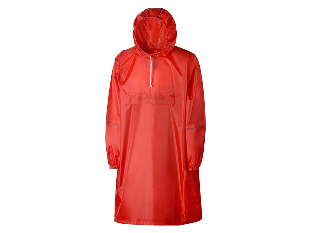 Дождевик - пончо прямого силуэта. Нагрудный карман плаща закрывается на молнию, которая дополнительно защищена клапаном, а еще в него можно полностью убрать дождевик. На дне кармана — ручка-петелька, которая в сложенном виде может использоваться для подвешивания. Швы капюшона и рукавов отделаны светоотражающим кантом, который делает человека заметным даже в темное время суток. Для комфортной посадки — затягивающийся на шнурок капюшон с фиксатором и манжеты на резинке. Термотрансфер (1 цвет (цветные изделия)) на данный товар осуществляется бесплатно. Оплачивается только настройка оборудования в размере 10000 рублей на весь тираж.