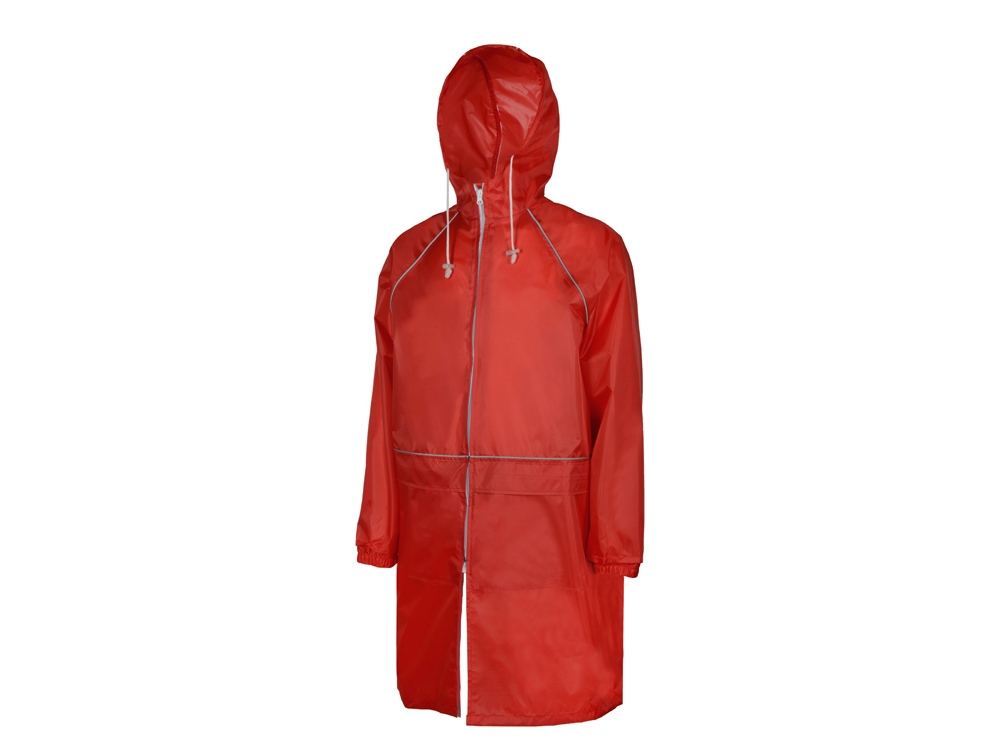 Плащ-дождевик прямого силуэта с капюшоном и рукавом реглан. Застегивается на центральную молнию со светоотражающей полосой с внутренней ветрозащитной планкой. Накладные карманами с клапанами. Двухшовный капюшон с кулиской по краю. Низ рукавов обработан манжетами с внутренней резинкой для комфортной посадке в области запястья. Верхний край клапана кармана, швы капюшона, а также регланные линии обработаны светоотражающим кантом. Поставляется в чехле-мешочке на шнурке для компактного хранения. Трафаретная печать (1 цвет (цветные изделия)) на данный товар осуществляется бесплатно. Оплачивается только настройка оборудования в размере 10000 рублей на весь тираж.
