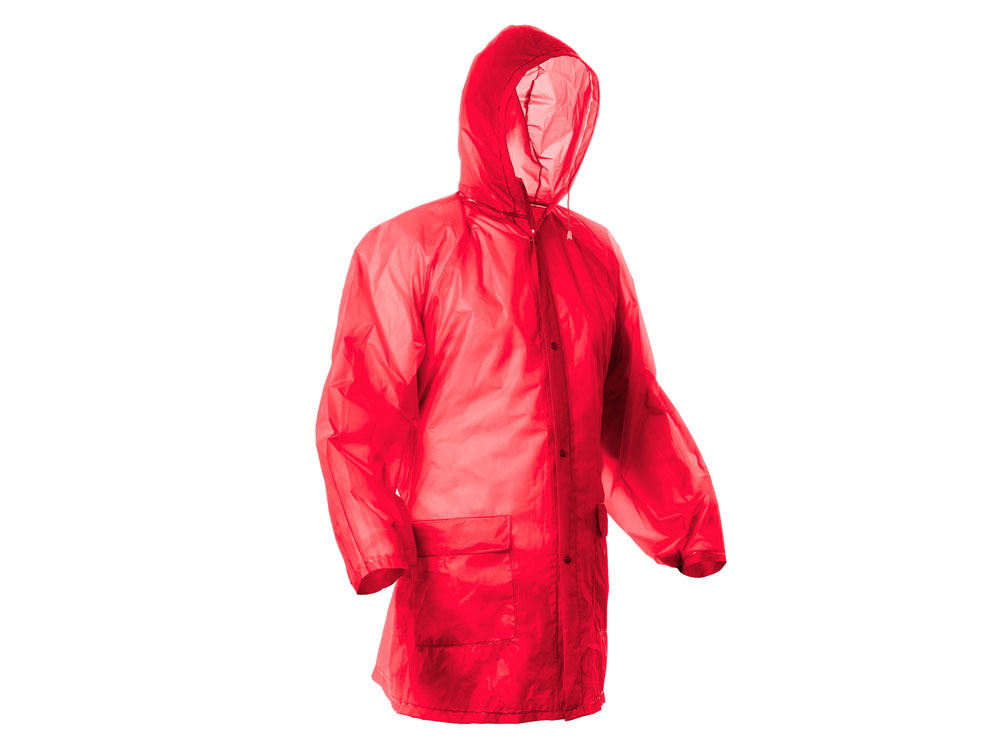 Дождевик, центральная застежка на 4 кнопки, боковые карманы с клапаном, манжеты с регулировочной пуговицей, 3 вентиляционных отверстия на спине и регулируемый капюшон с кулиской.