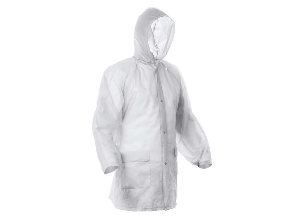 Дождевик, центральная застежка на 4 кнопки, боковые карманы с клапаном, манжеты с регулировочной пуговицей, 3 вентиляционных отверстия на спине и регулируемый капюшон с кулиской.