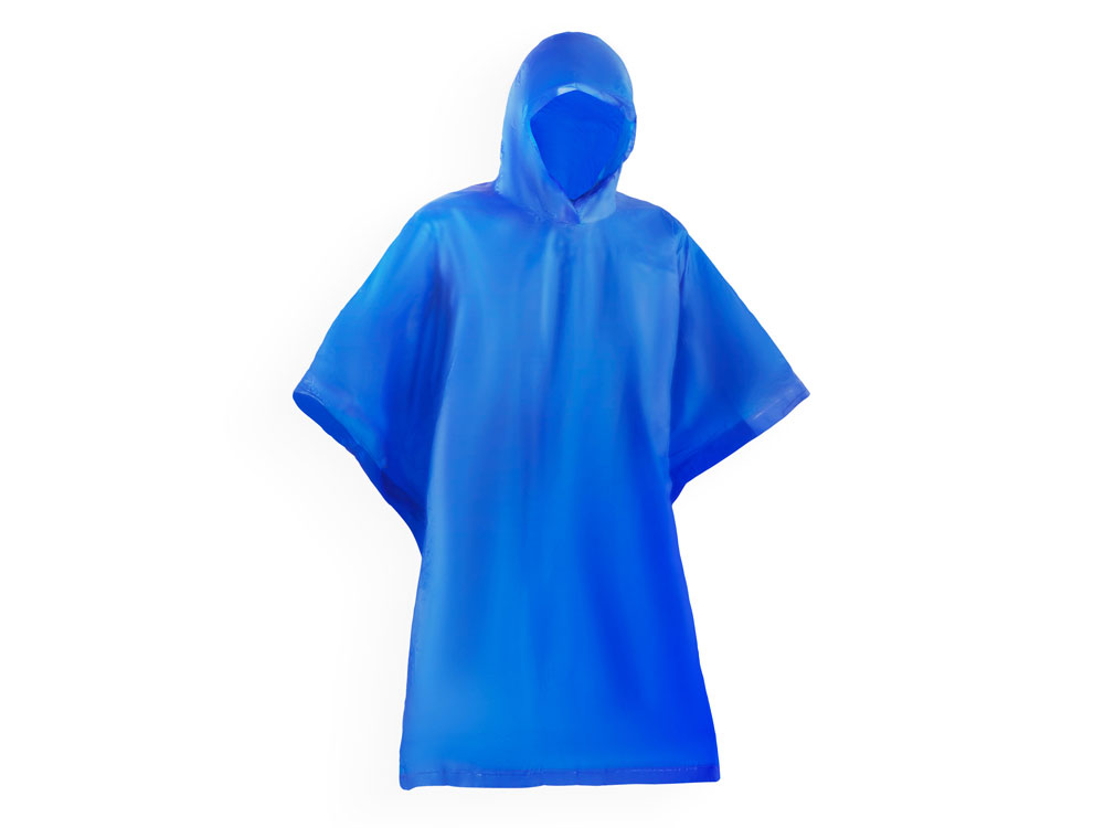 Складное водонепроницаемое пончо с капюшоном и отверстием для рук, с боковой застежкой на кнопки. Широкий диапазон цветов. Изготовлен из ПВХ.