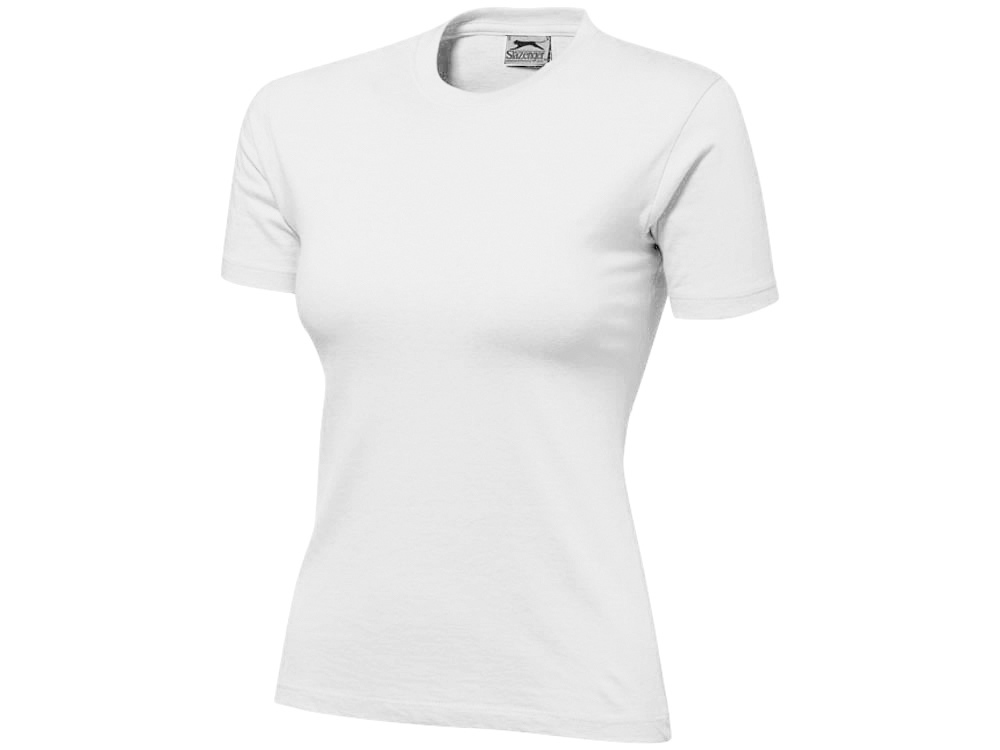 Женская футболка с короткими рукавами Ace. Модель стандартной посадки. Женская и детская модели - со швами по бокам. Резинка с эластаном и двойной строчкой на воротнике. Лента от плеча к плечу. Однослойная джерси, 100% хлопок. 150 г/м².