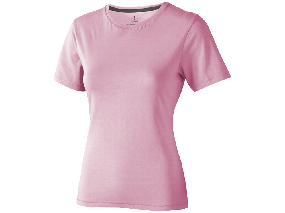 Женская футболка с короткими рукавами Nanaimo. Стандартный покрой. Резинка 1х1 на воротнике. Приятный на ощупь материал. Предварительная усадка. Атласная лента от плеча к плечу. Удобная для нанесения поверхность материала. Принт сзади. Детали со швами Pick-Stitch. Однослойная джерси гладкого переплетения, 100% чесаный хлопок кольцевого способа прядения. 160 г/м². Трафаретная печать (1 цвет (цветные изделия)) на данный товар осуществляется бесплатно. Оплачивается только настройка оборудования в размере 10000 рублей на весь тираж.
