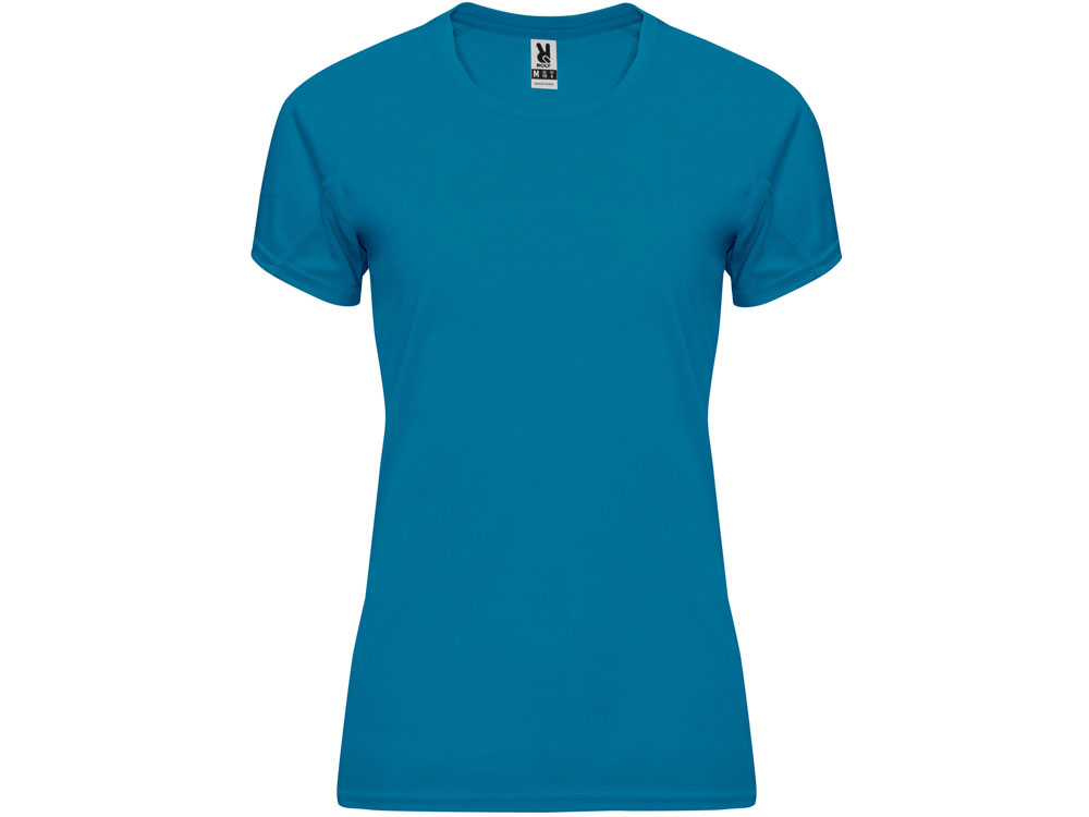 Спортивная футболка с коротким рукавом реглан для женщин. Круглый вырез горловины с отделкой плоским швом. Рукав сложного кроя для обеспечения дополнительного удобства при занятиях спортом. Отделка плоским швом с застилом по пройме и рукавам. Технологичное полотно с функцией DRY CONTROL и защитой от UV излучения
