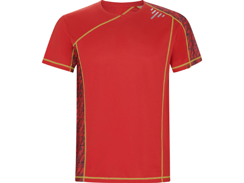 Спортивная футболка с коротким рукавом и принтованными вставками. Контрастные отстрочки плоским швом, светоотражающие элементы на полочке и спинке. Эко лейбл на рукаве. Технологичное полотно: *переработанный полиэстер с функцией контроля сухости *защита от UV излучения