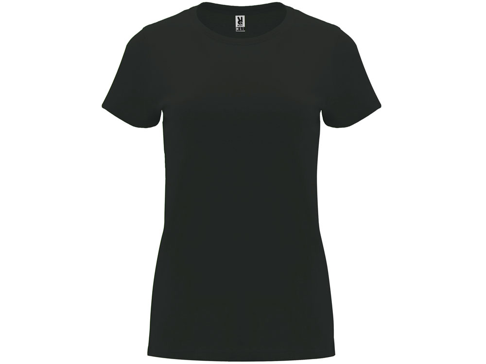 Женская приталенная футболка. Круглый вырез горловины обработан рибом 1х1. Шов горловины укреплен тесьмой.