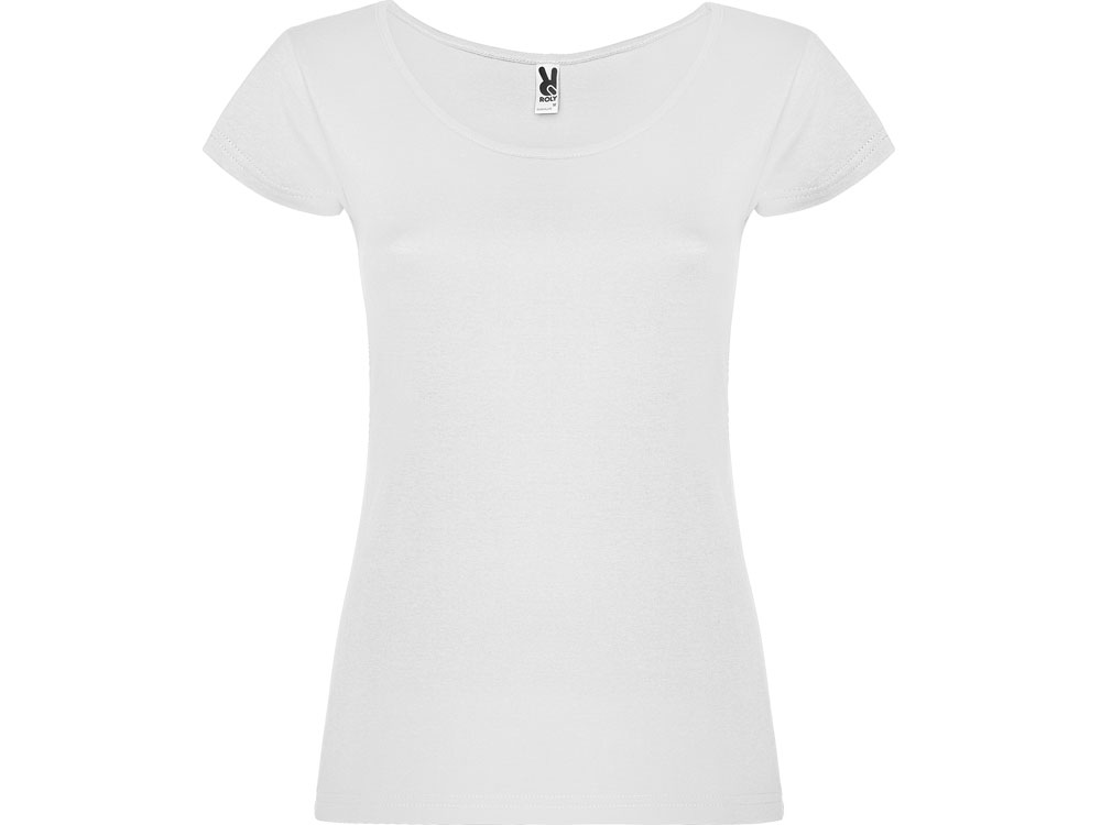 Прилегающая женская футболка с глубоким вырезом, обработанным рибом.