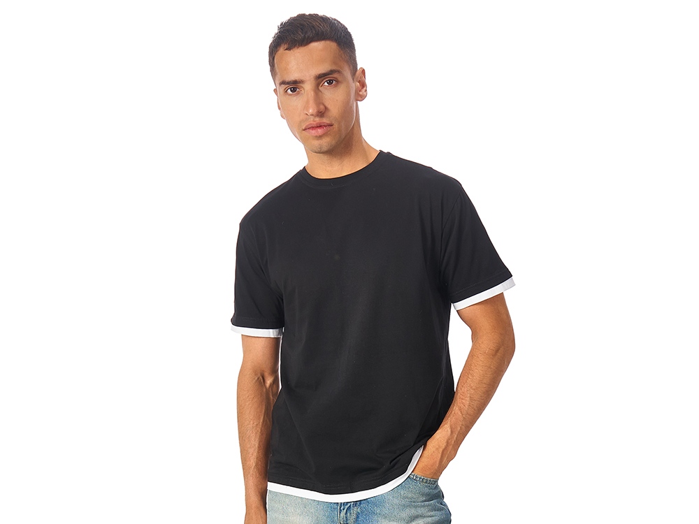 Футболка комфортной посадки с контрастной отделкой по низу и рукавам, которую можно удачно зарифмовать с вашим лого или изображением по цвету. Благодаря скрытому лейблу все внимание будет обращено к вашему нанесению. Материал — джерси из хлопка, средней плотности 150гр/м2, что позволяет носить футболку в жаркие летние дни. Трафаретная печать (1 цвет (цветные изделия)) на данный товар осуществляется бесплатно. Оплачивается только настройка оборудования в размере 9100 рублей на весь тираж.