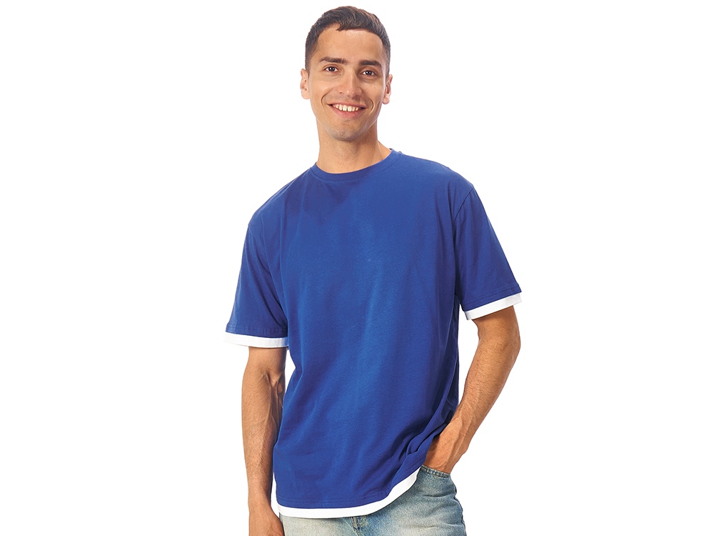 Футболка комфортной посадки с контрастной отделкой по низу и рукавам, которую можно удачно зарифмовать с вашим лого или изображением по цвету. Благодаря скрытому лейблу все внимание будет обращено к вашему нанесению. Материал — джерси из хлопка, средней плотности 150гр/м2, что позволяет носить футболку в жаркие летние дни. Трафаретная печать (1 цвет (цветные изделия)) на данный товар осуществляется бесплатно. Оплачивается только настройка оборудования в размере 9100 рублей на весь тираж.