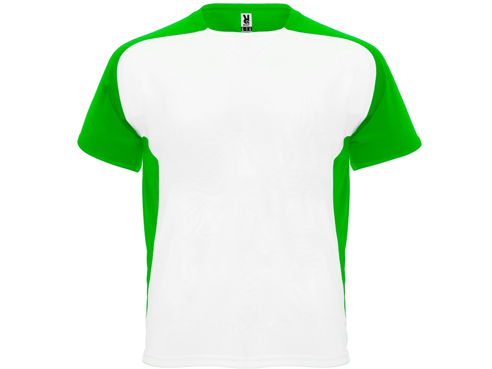 Спортивная футболка с коротким рукавом реглан. Круглый вырез горловины. Контрастные рукава и боковые вставки.